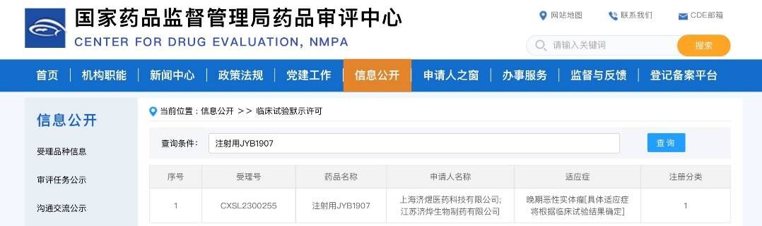 济民可信集团宣布,旗下子公司上海济煜医药科技有限公司(以下简称“上海济煜”)自主研发的注射用JYB1907已获国家药品监督管理局批准,开展用于晚期恶性实体瘤治疗的临床试验。