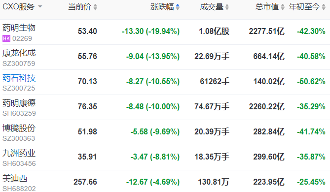 概念股9月13日出现大幅下跌。有声音表示,由于国内相对薄弱的创新药产业,短期无法为庞大的CXO行业带来足够的下游订单。换句话说,无论是biotech的出海,亦或是CXO企业的出海,短期内变得异常艰难。