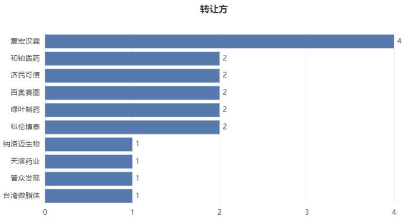 从license out项目所属企业来看,既有来自石药、绿叶、济民可信这类的传统老牌药企业,也有来自礼新医药、天演药业、多禧生物这类的初创biotech;同时也有来自像复宏汉霖、君实生物、信达生物这类的biopharma。