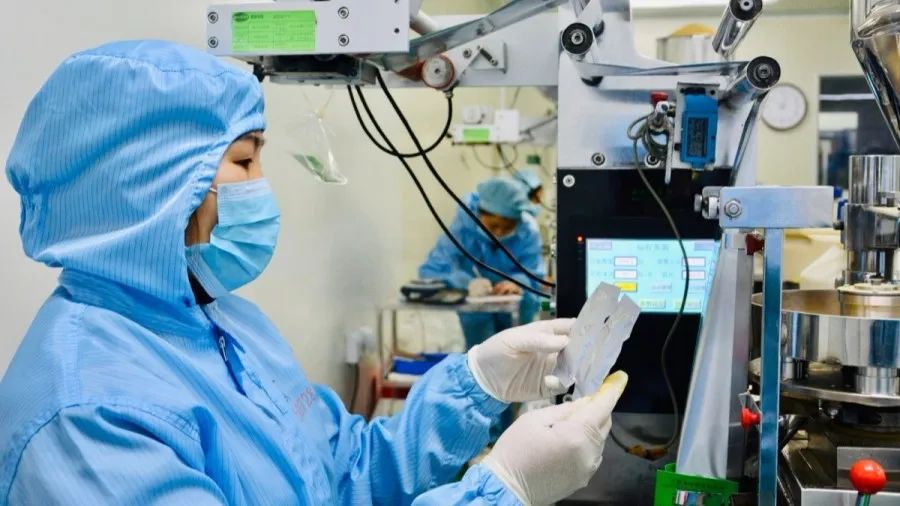 ▲济民可信集团公益生产“清肺排毒汤”复方颗粒正式下线